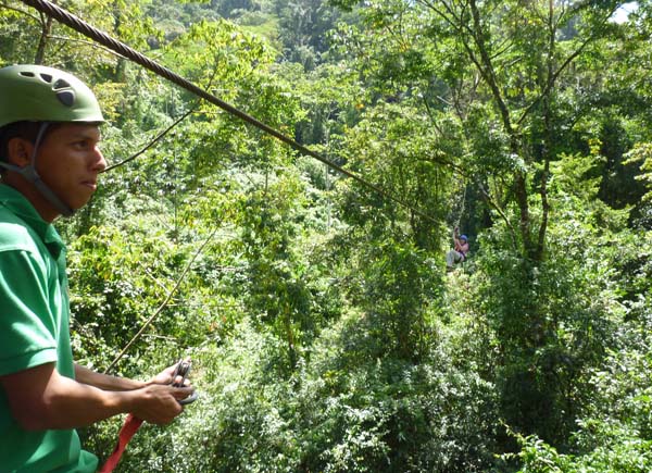 Arenal (D, C) : esta mañana, una novedad para mí, con el Canope Tour seguido de un paseo a caballo. Es muy tranquilizador en un primer momento lo admito, pero es realmente muy sencillo y seguro. Equipado con un arnés, estoy en el aire colgando en el cable... un pequeño rapel y a 30 minutos de paseo a caballo hasta el final de esta mañana. Después del almuerzo y después de dejar el coche de alquiler, nos decidimos a tomar una corta caminata hasta el mirador del volcán con un guía, y luego terminar la noche Eco termales Hot Springs "piscinas de agua caliente" para la relajación hasta la cena. Alojamiento en el hotel.